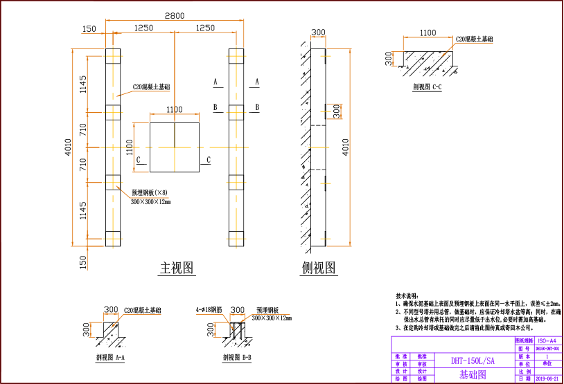 3、運轉重量按下塔體存水一半深計算,如果裝滿水計算應乘以1.5。