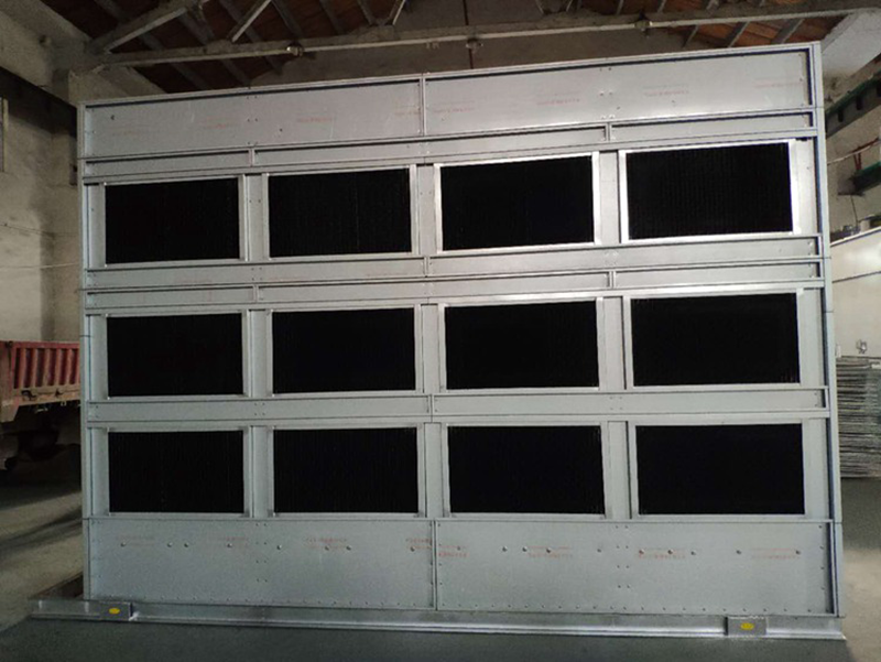 冷卻器在填料上方,進、排風與噴淋水的方向形成為同向流動,有效避免干點,噴淋水把管子外壁完全覆蓋,防止在干點部位生成水垢。
