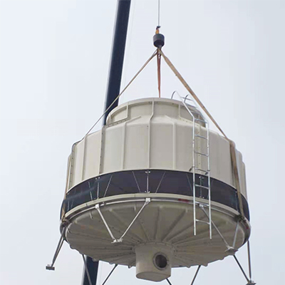 冷卻塔是利用水和空氣的接觸,通過蒸發作用來散去工業上或制冷空調中產生的廢熱的一種設備。基本原理是:干燥(低焓值)的空氣經過風機的抽動后,自風網處進入冷卻塔內;飽和蒸汽為壓力大的高溫水分子向壓力低的空氣流動,濕熱(高焓值)的水由播水系統灑入塔內。